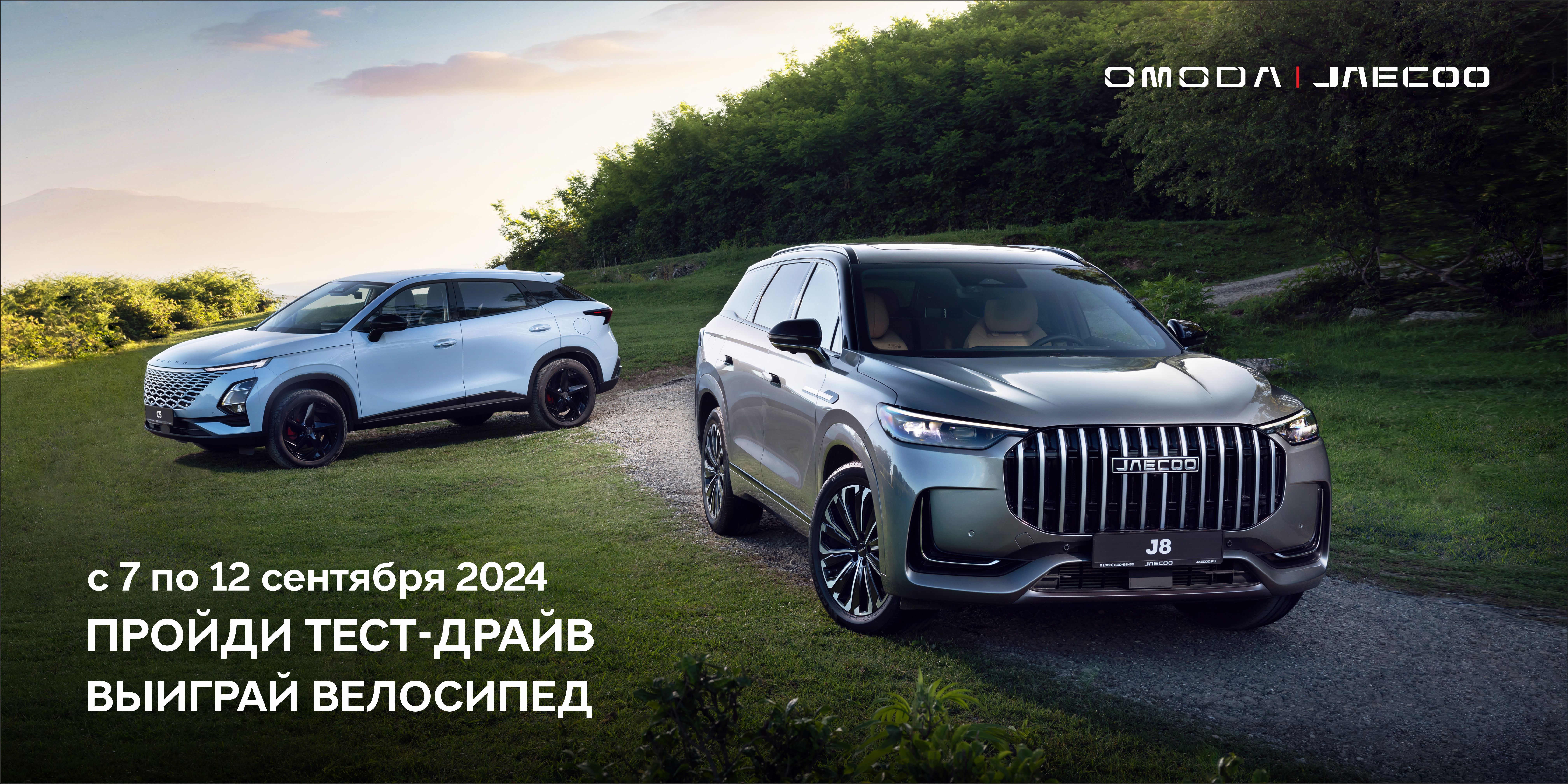 Мы рады сообщить вам о захватывающем событии! С 7 по 12 сентября у Вас есть уникальная возможность не только протестировать автомобили OMODA и JAECOO, но и выиграть стильный велосипед!